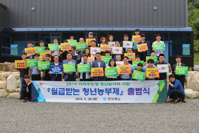 경북도는 28일 월급받는 청년농부 16명을 선발하고 사업 참여법인 농장인 농업회사법인 ㈜경성팜스에서 ‘월급받는 청년농부제’출범식을 가졌다.