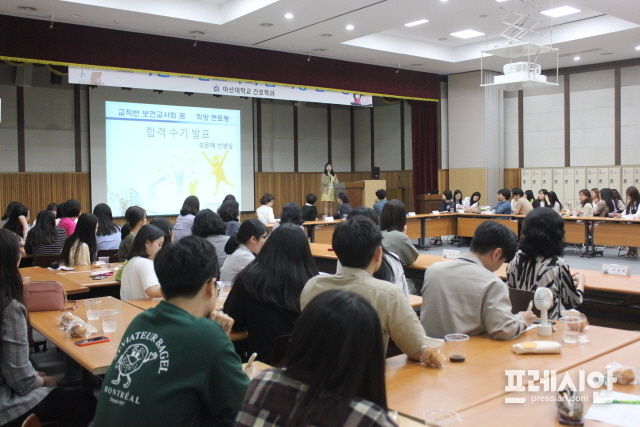 특히 경남혜림학교 성은혜 선생과 한국나노마이스터고등학교 신종우 선생의 올해 보건교사 임용고시 합격후기 발표를 통해 간호학과 학생들은 생생한 합격 노하우를 전수 받을 수 있었다.