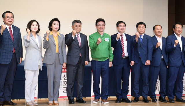 ▲경북도가 구미5공단 활성화 방안 해법 찾기 토론회에 앞서 참석자들과 파이팅을 외치고 있다.ⓒ경북도