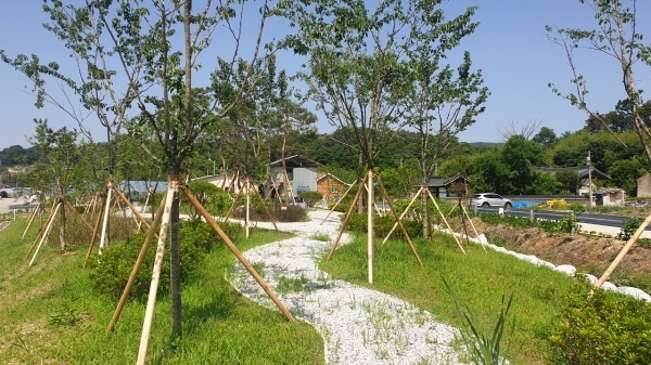 소나무와 벚나무 등 8종의 교목류와 영산홍외 3종의 관목, 구절초와 꽃잔디 등 초화류까지 총 1만600여본의 수목류를 다층적으로 식재했다.