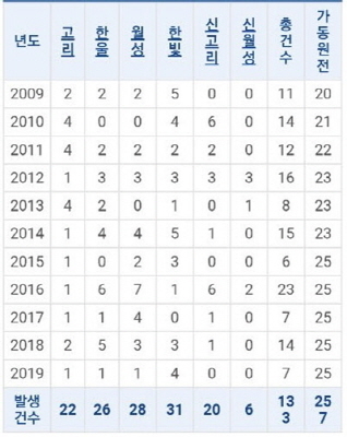 정읍녹색당은 원자력위원회 산하 원자력안전정보공개센터 자료를 근거로 "2009년부터 2019년 5월까지 최근10년간 전국 6개 핵발전소 사고 총건수 133건 가운데 한빛원전(고창-영광)이 31건으로 제일 많이 발생했다"고 공개했다.