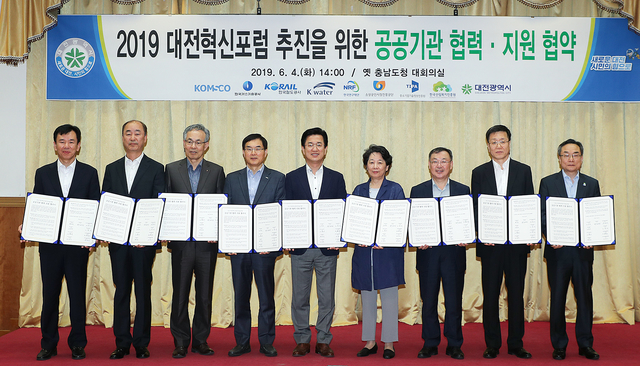대전광역시(이하대전시)는 4일 옛 충남도청 대회의실에서 ‘2019 대전혁신포럼 추진을 위한 공공기관 협력·지원 협약식을 개최했다.