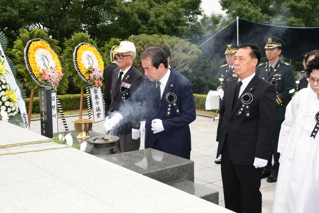 이날 현충탑에서 가진 추념식에는 김충섭 시장을 비롯해 송언석 국회의원, 김세운 시의회의장, 보훈단체 및 가족 그리고 기관단체장, 학생, 시민 등 900여명이 참석했다.
