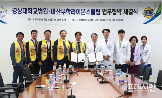 경상대학교병원은 암센터 2층 대회의실에서 마산무학라이온스클럽과 지역사회 취약계층 시각장애인에 대한 각막 이식수술을 위한 협약을 체결했다고 6일 밝혔다.