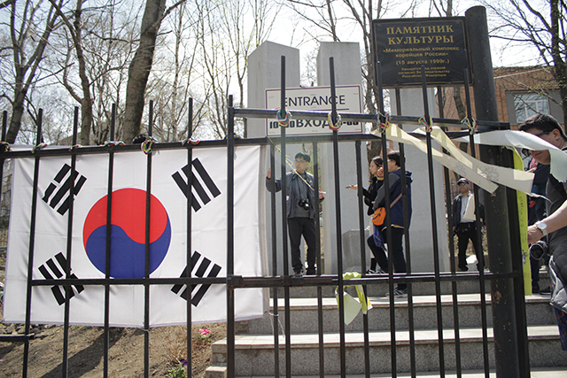 이곳이 과거 한인촌이었음을 알게 해주는 또 다른 단서가 있었다. '서울거리' 집보다 윗 동네인 하바롭스크길에 있는 신한촌 기념비다. 이 기념비는 1999년 광복절에 연해주의 한인들과 해외 동포들이 3.1운동 80주년을 기념해 세운 것이다. 박 기관사는 "우리가 남북으로 갈라져있고 디아스포라의 역사를 갖고 있지만, 미래에는 다 하나 되어 협동해서 사는 민족이 되기를 기원하는 의미"라고 했다.