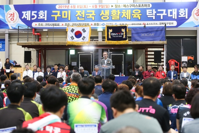 장세용 구미시장은 “구미를 방문해 주신 전국의 탁구동호인 여러분들을 환영하며 그동안 갈고 닦은 기량을 마음껏 발휘하여 선의의 경쟁을 펼쳐 줄 것”을 주문했다.