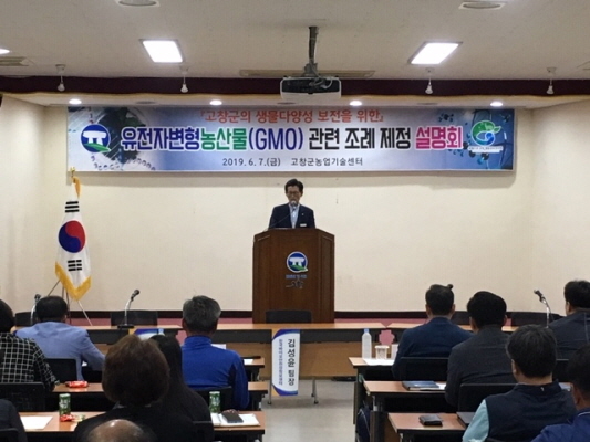 10일 고창군에 따르면 지난 7일 고창군농업기술센터 대회의실에서 고창군민과 국내 GMO 관련 전문가 등 70여명이 참여한 가운데 ‘고창군 유전자변형농산물(GMO) 관련 조례 제정을 위한 설명회’를 개최했다.
