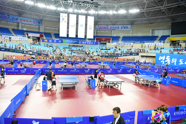 ▲지난해 전국남여중고 탁구대회가 열린 김천종합스포츠타운 내 탁구장 전경 ⓒ김천시