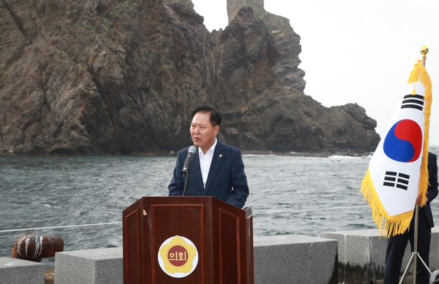 ▲남진복 도의원은 지난 10일 독도에서 열린 '경북도의회 제309회 제1차 정례회'에서 5분 자유발언을 하고있다.ⓒ경북도의회