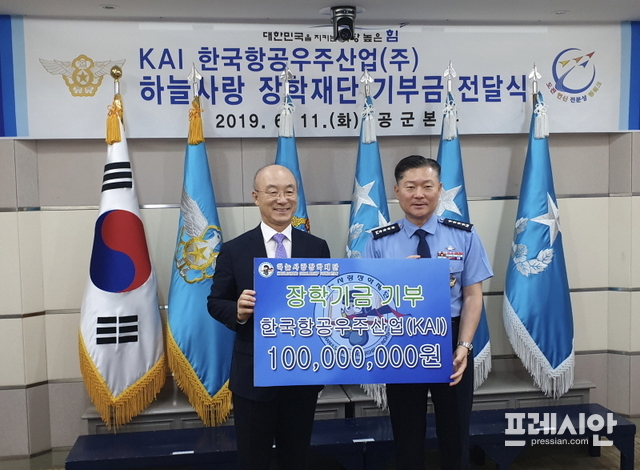 경남 사천 한국항공우주산업(주)(KAI) 김조원 사장은 11일 원인철 공군 참모총장과 심승섭 해군 참모총장을 예방하고 각 군 장학재단에 각각 1억 원의 후원금을 기탁했다.