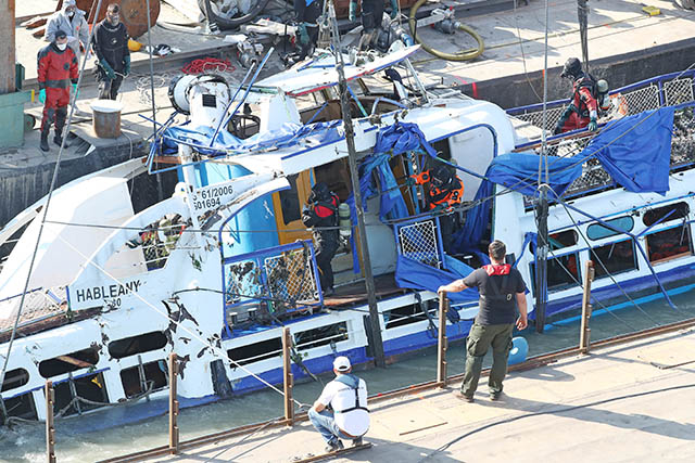 11일 오전 6시 47분 허블레아니호의 인양이 시작된 이후 대형 크레인이 와이어를 감기 시작한 지 58분 만에 해당 유람선의 조타실에서 헝가리인 선장으로 추정되는 시신 1구가 수습된 것에 이어 객실로 이어지는 입구에서 실종자로 추정되는 시신 3구가 수습됐다.