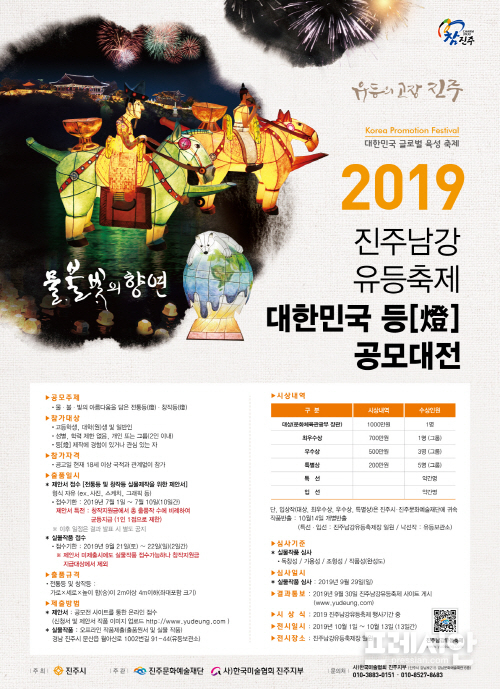 2019진주남강유등축제 대안민국 등(燈) 공모대전은 진주시가 주최하고 진주문화예술재단과 한국미술협회 진주지부가 공동 주관하는 행사로 지난 2013년부터 시작해 등(燈)의 아름다운 조형미를 뽐내왔다.