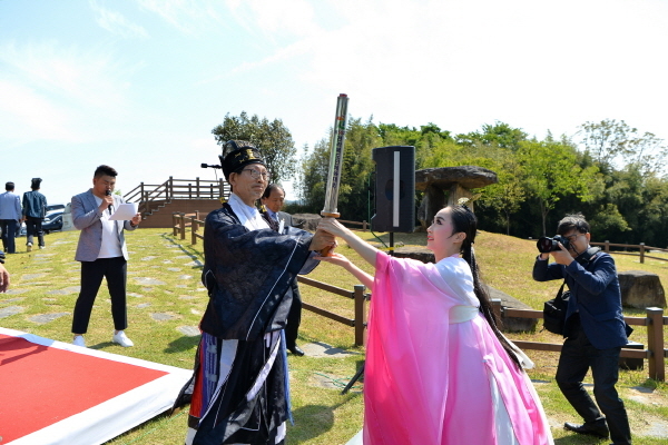 유기상 군수 : 지난 4월19일 3000년전 고인돌 시절 하늘에 천제를 올렸던 곳(고창 고인돌공원)에서 한 해 농업의 시작을 하늘에 알리는 제1회 시농대제(始農大祭)를 열었다.