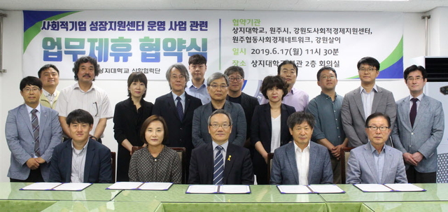 ▲상지대는 지난 17일 사회적기업 성장지원센터 운영 사업과 관련 상호 협력체계 구축을 위해 업무협약을 했다. ⓒ상지대