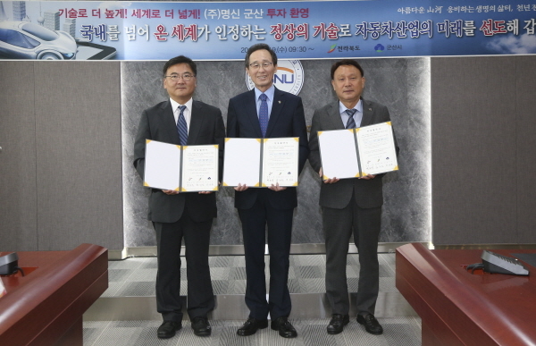 전북 군산이 글로벌 전기차 생산기지로 탈바꿈될 전망이다. 전북도와 군산시, 자동차부품생산업체인 ㈜명신은 19일, 투자협약을 체결하면서 군산에서 미래 자동차산업의 선점효과를 기대하고 있다.