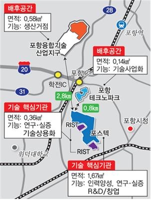 포항연구개발특구는 연구개발과 창업 및 산업화를 연계하는 과학산업 발전 모델이다. 포스텍과 포항산업과학연구원을 기술 핵심기관으로 하고 포항테크노파크와 경제자유구역 등 인근 산업단지를 배후공간으로 육성한다.