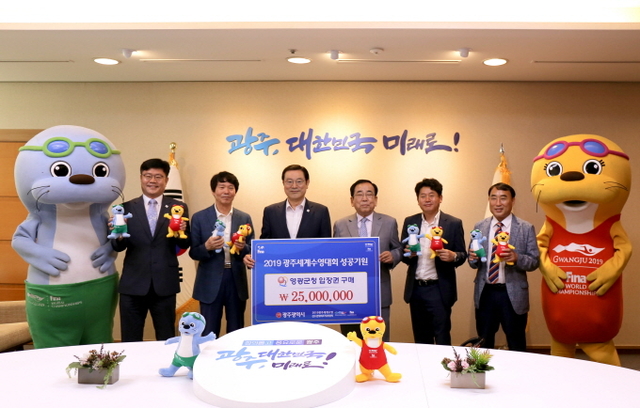 영광군(군수 김준성)은 21일 광주시청을 방문해 2019 광주세계수영선수권대회 입장권(2천 5백만 원 상당)을 구입하고 대회 조직위원장인 이용섭 광주시장과 입장권 구매증서 전달식을 가졌다.