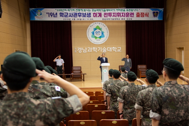 진주 국립경남과학기술대학교(총장 김남경)는 26일 대학 본관 2층 강당에서 하계 전투지휘자 훈련 출정식을 가졌다.