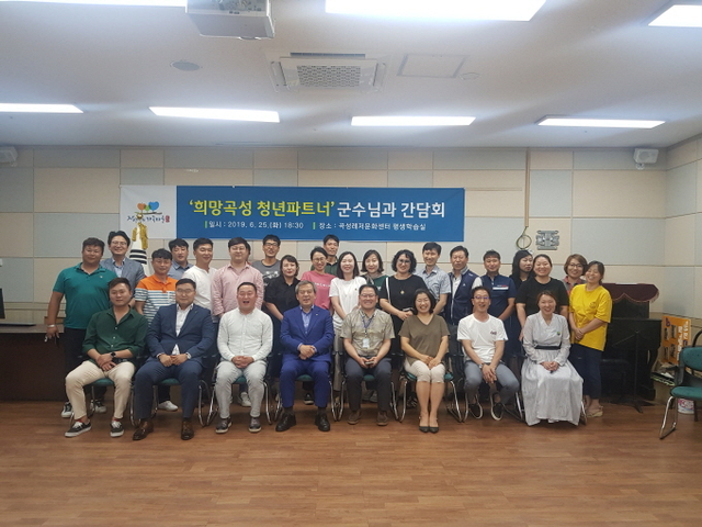 곡성군(군수 유근기)은 지난 25일 곡성레저문화센터에서 지역 청년들로 구성된 희망곡성청년파트너 회원들과 2019년 상반기를 정리하며 간담회를 실시했다.