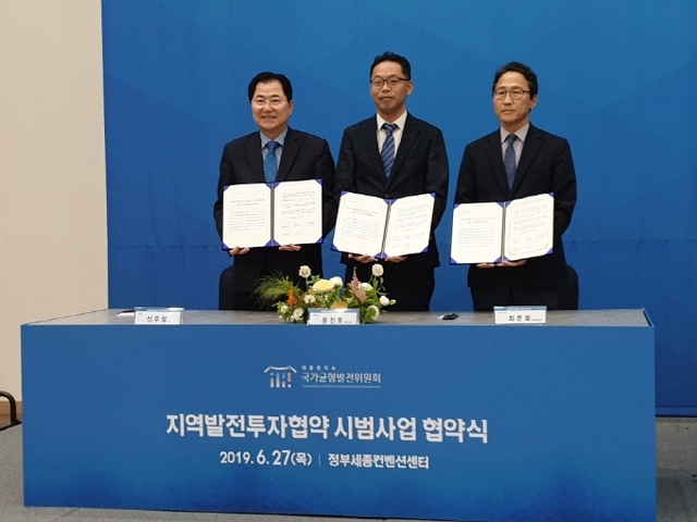 대통령 직속 국가균형발전위원회(위원장 송재호)는 27일 정부세종컨벤션센터에서 전라남도와 해양수산부를 비롯한 정부 7개 부처, 22개 지자체를 대상으로 ‘지역발전투자협약 시범사업’ 협약식을 했다.