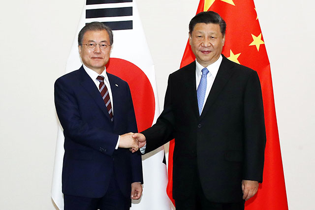 사드(고고도 미사일 방어체계) 언급도 나왔다. 시 주석이 "사드 해결 방안이 검토되기를 바란다"고 하자, 문 대통령은 "그렇기 때문에 비핵화 문제가 해결돼야 한다"고 밝혔다.