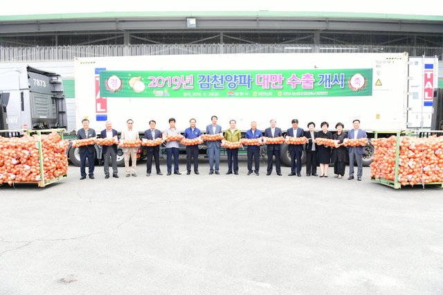 김천시(시장 김충섭)는 과잉생산에 따른 양파가격 하락으로 농가의 시름이 깊어지고 있는 가운데 28일 김천농협(대표 이기양) 농산물산지유통센터에서 2019년산 김천양파 대만수출 선적식을 갖고 본격적인 양파수출에 돌입했다.