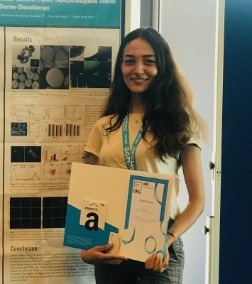 이번 학회에서 기즐란 대학원생은 ‘열화학적 암치료를 위한 생체적합성과 자극 민감도가 높은 다공성 초상자성체 배터라이트 입자의 제조 및 in vitro 항암 효과’라는 주제의 연구 성과를 발표했다.