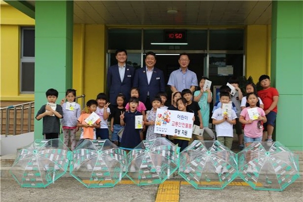 전북본부는 용덕초등학교, 반월초등학교, 조촌초등학교 등에 투명우산과 교통안전 옐로카드로를 특별 제작해 전달했다.