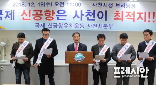지난해 12월 19일 국제 신공항 유치운동 사천시 본부가 이렇게 외쳤다.