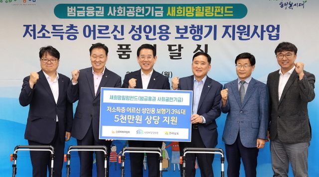 전라남도는 지난 8일 도청에서 신용회복위원회, 사회보장정보원과 함께 전남지역 거동이 불편한 저소득 어르신에게 5천만 원 상당의 성인용 보행기 394대를 지원하는 전달식을 가졌다.