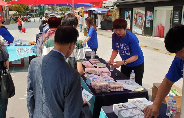 이번 홍보캠페인은 휴가철을 맞아 경남을 홍보하는 캠페인으로 의령군은 일반적 홍보에서 벗어나 의령 한과 시식과 9경 홍보 부채를 나눠주는 등 효과 있는 홍보전을 펼쳤다.