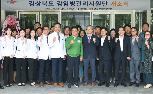 경북도 감염병관리지원단은 동국대학교(경주) 의과대학에 위탁운영하며 이관 교수를 단장으로 예방의학전문의, 의학박사, 간호학, 보건학 전공 전문 인력 8명으로 운영하며 위기상황 시 신속한 대응과 원활한 소통채널 유지를 위해 도청 내에 자리 잡았다.
