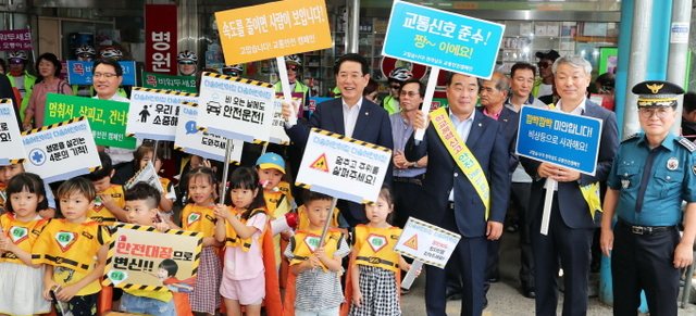 김영록 전라남도지사는 16일 여수 서시장을 방문해 권오봉 여수시장, 이강순 전통서시장 상인회장, 안전생활실천 시민연합, 녹색어머니회 등 민간단체 회원 100여명과 함께 ‘고맙습니다’ 교통안전 캠페인을 펼쳤다.