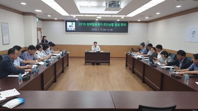 강진군은 지난 17일 군청 소회의실에서 각 지표별 실과소장 20여명이 참석한 가운데 ‘2019 정부합동평가 대비 추진상황 보고회’를 개최했다.
