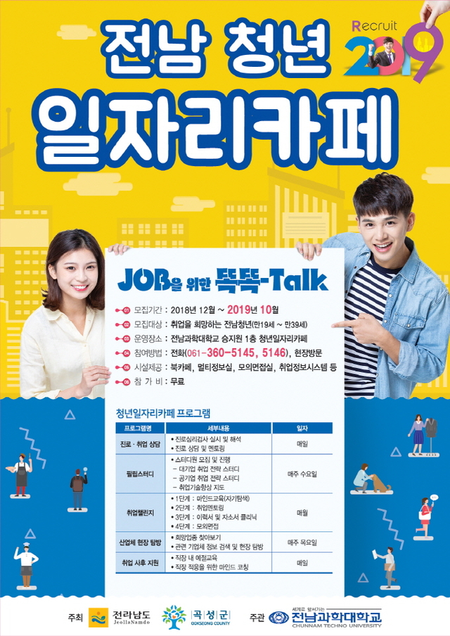먼저 청년들의 창업을 위해서는 청년행복가게를 조성하고 있다. 대상에 선정되면 리모델링비 및 비품비, 임차료 일부를 지원하며, 현재 9개소가 문을 열었다. 또한 기차마을 전통시장에는 청년 챌린지 마켓 4개소를 조성해 청년 창업과 시장 활성화를 연계하고 있다. 청년들의 창업은 인근 상권과 시장에 활력을 주면서 곡성의 분위기를 한층 고조시키고 있다. 뿐만 아니라 청년들의 취창업 역량 강화와 일자리 연계를 위한 일자리 카페 ‘필립’이 지난 4월 정식으로 문을 열었고, 청년 내일로 사업 등을 통해서 156명에게 맞춤형 일자리를 마련해 주기도 했다.