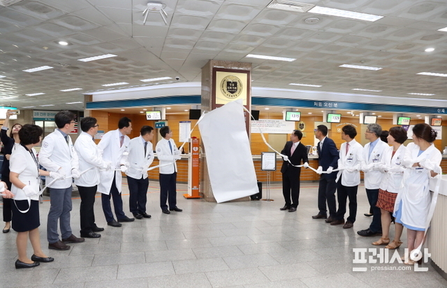 이날 행사에는 신희석 병원장, 서광보 상임감사, 이영준 진료처장, 이철희 의료질향상실장을 비롯해 병원 임직원 100여 명이 참석한 가운데 3주기 의료기관인증을 획득하기까지 간략한 현황보고, 병원장의 격려사, 현판 제막식 순으로 진행됐다.