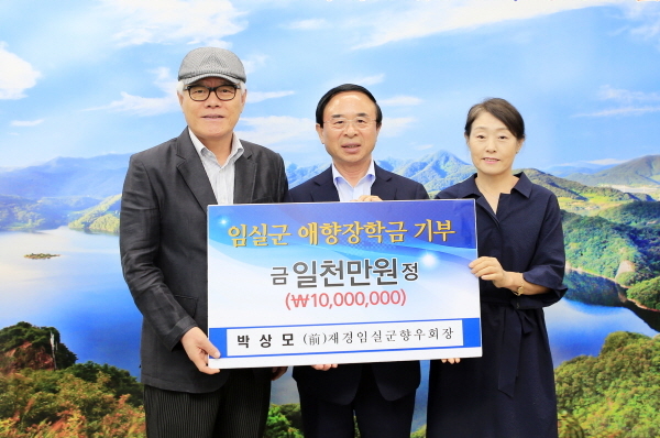 전북 임실군은 박상모 전 재경 임실군향우회장이 임실군 애향장학회 이사장인 심 민 군수에게 장학금 1000만원을 전달했다고 30일 밝혔다.
