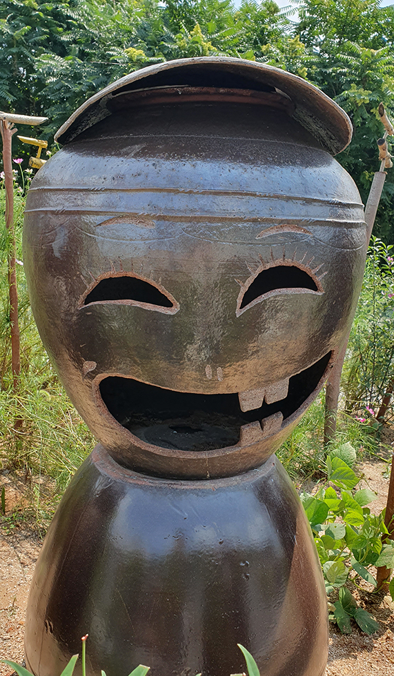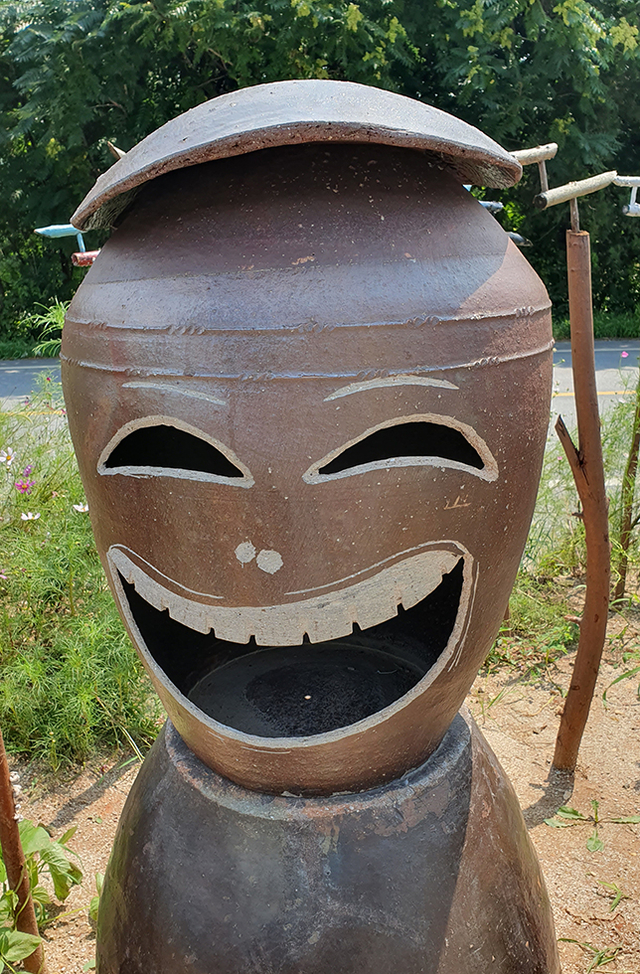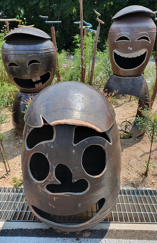 ▲11일 강원 영월군 북면 영월농협 가공사업소 도로변에 설치한 코믹스러운 ‘익살장독대’와 솟대가 눈길을 끌고 있다. 영월농협 가공사업소는 우리학교 장만들기 체험과 도시여성 소비자들에게 장담그기 체험 등 장류1번지 영월홍보에 앞장서고 있다. ⓒ프레시안(홍춘봉)