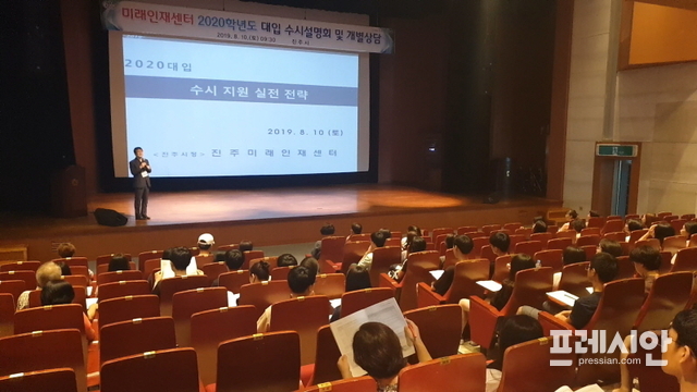 경남 진주시 미래인재센터는 고3 수험생과 학부모 200명을 대상으로 ‘2020학년도 대학입시 수시 설명회 및 개별상담’을 가졌다.