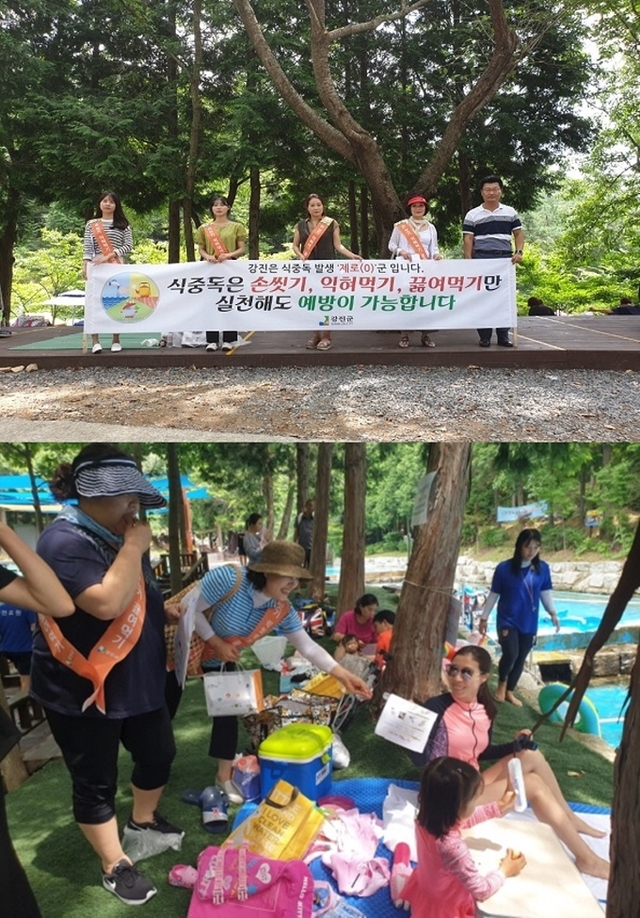 강진군이 휴가철을 맞아 지난 9일 소비자식품위생감시원등 10여명과 함께 관내 물놀이장 3개소(보은산V랜드, 석문공원, 초당림)에서 식중독 예방 캠페인을 실시했다.
