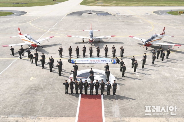 공군 제3훈련비행단(3훈비) 제236비행교육대대는 손병준 대위와 신은섭 학생 조종사가 탑승한 KT-1 항공기가 임무를 마치고 활주로에 안착하면서 8만 시간 무사고 비행의 대기록을 달성했다고 15일 밝혔다.