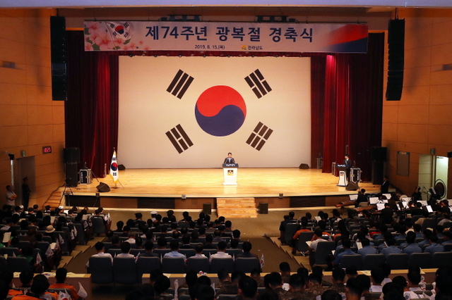 전라남도는 15일 도청 김대중강당에서 제74주년 광복절 경축식을 열어 도민과 함께 진정한 극일을 이뤄나갈 것을 다짐했다.