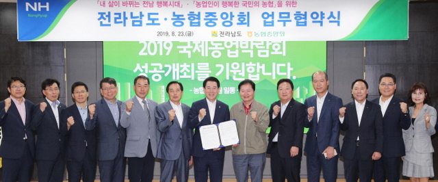 전라남도는 23일 농협중앙회 회의실에서 농협중앙회와 전남의 농업·농촌 발전과 농가소득 향상 등을 위한 농정시책을 추진키로 업무협약을 체결했다.