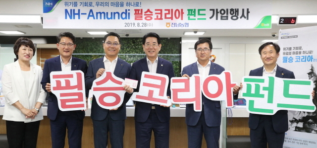 김영록 전라남도지사는 28일 NH농협은행 전남도청 지점을 방문해 부품·소재·장비 분야 국내 기업을 응원하는 ‘NH-아문디(Amundi) 필승코리아 주식형 펀드’ 가입을 약정했다.