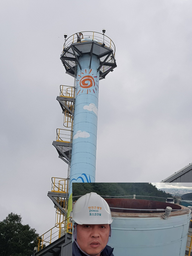 최근 포항남구 오천읍을 중심으로 악취 민원의 원인으로 지목된 포항 생활폐기물에너지화시설(이하 SRF)의 악취발생 여부를 직접 검증하기 위해 SRF시설 34m 굴뚝을 오르내리는 공무원이 있다.