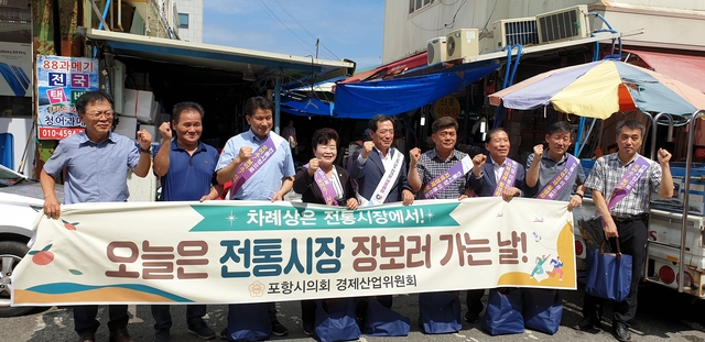 강필순 경제산업위원장 및 위원, 일자리경제노동과, 흥해읍 직원들이 참여한 가운데 행사 참가자들은 추석맞이 제수용품을 직접 구입하고, 지역 상인들의 어려움을 청취하는 뜻깊은 시간을 가졌다.