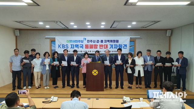 더불어민주당 진주시 갑·을 지역위원회는 10일 진주시청 브리핑룸에서 기자회견을 열고 “우리는 지역분권과 풀뿌리 민주주의에 역행하고 서부경남 지역민을 무시하는 KBS의 일방적인 진주방송국 폐쇄계획 철회”를 촉구했다.