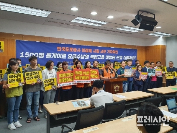 이들은 "불법 파견 판정을 받고 정규직 전환을 꿈꿔온 수납원들을 영원히 비정규직을 만들어 버린 이강래 사장을 용서할 수 없다"며 불법 파견을 철회하라고 주장하면서 "이강래 사장이 전북 남원에서 내년 총선에 나선다면 이를 반드시 막겠다"고 밝혔다.
