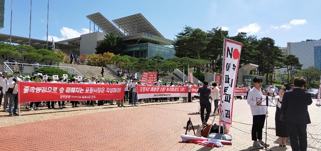 17일 오전 10시 30분 포항남구 대잠센트럴하이츠 주민들은 도보행진에 이어 포항시청앞 광장에서 '양학공원 민간개발 특례사업'의 일환으로 진행되는 '민간 고층 아파트 건설'을 반대하는 집회를 열었다.