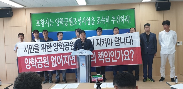 같은 시간 포항시청 브리핑 룸에서는 대이동 청년회와 특우회 등 16개 자생단체는 양학공원 건설을 찬성하는 성명서를 발표하는 기자회견을 가졌다.